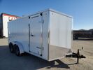 NEW Factory Outlet 7x12ft Enclosed Cargo Trailer - Rear Barn Doors - Wedge Front - 32in Side Door w/ Door Holder - EZ Lube Hubs Spring Axles - .030 Aluminum Screwless Exterior - (2) 3,500lbs Spring Axle - Electric Brakes w/ Breakaway Kit - ST205/75R15 Tires - 15in x 5 Bolt...