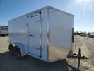 NEW Factory Outlet 8.5x16ft Enclosed Cargo Trailer - Rear Barn Doors - Wedge Front - (4) Recessed D-Rings - 32in Side Door w/ Door Holder - EZ Lube Hubs Spring Axles - .030 Aluminum Screwless Exterior - (2) 3,500lbs Spring Axle - Electric Brakes w/ Breakaway Kit - ST205/75R...